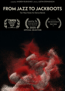 “From Jazz to Jackboots” is an experimental animated dance film exploring the Nazi regime’s methodical restriction of jazz through their “10 Rules for Dance Bands.” The film reimagines itself through progressively censored variations of jazz standard, “Minnie the Moocher,” transitioning from freeform expressionist painting and collage to statuesque perfection.
